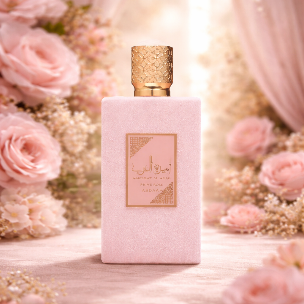 Ameerat Al Arab Prive Rose Asdaaf est une fragrance féminine élégante et raffinée, inspirée de la splendeur des jardins de roses orientaux. Cette eau de parfum s’ouvre sur des notes délicates de rose fraîche et de fleurs blanches, évoluant vers un cœur plus riche et sensuel où l’ambre et les muscs se marient à des nuances poudrées. La base chaleureuse et légèrement sucrée enveloppe la peau d’un sillage sophistiqué, parfait pour les moments spéciaux et les soirées élégantes. Ameerat Al Arab Prive Rose Asdaaf est un parfum à la fois doux, séducteur et profond, reflétant la féminité moderne avec une touche de mystère oriental.