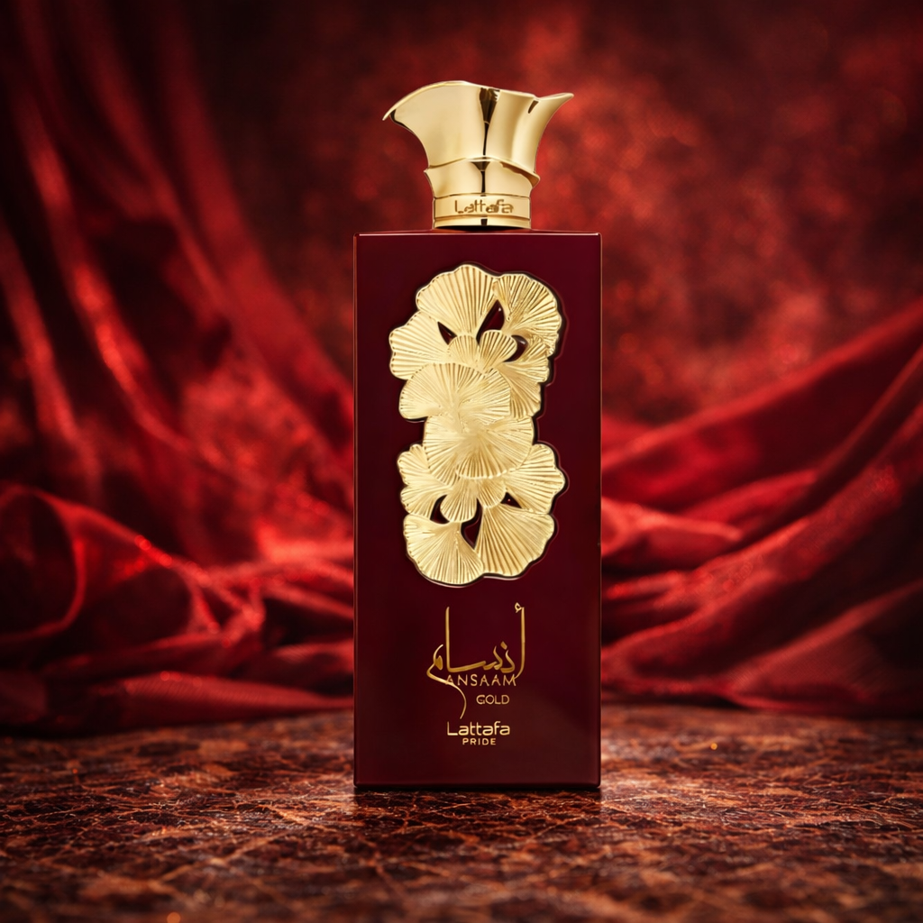 Ansaam Gold est une eau de parfum florale ambrée gourmande, élégante et chaleureuse, idéale pour les saisons fraîches et les occasions spéciales.