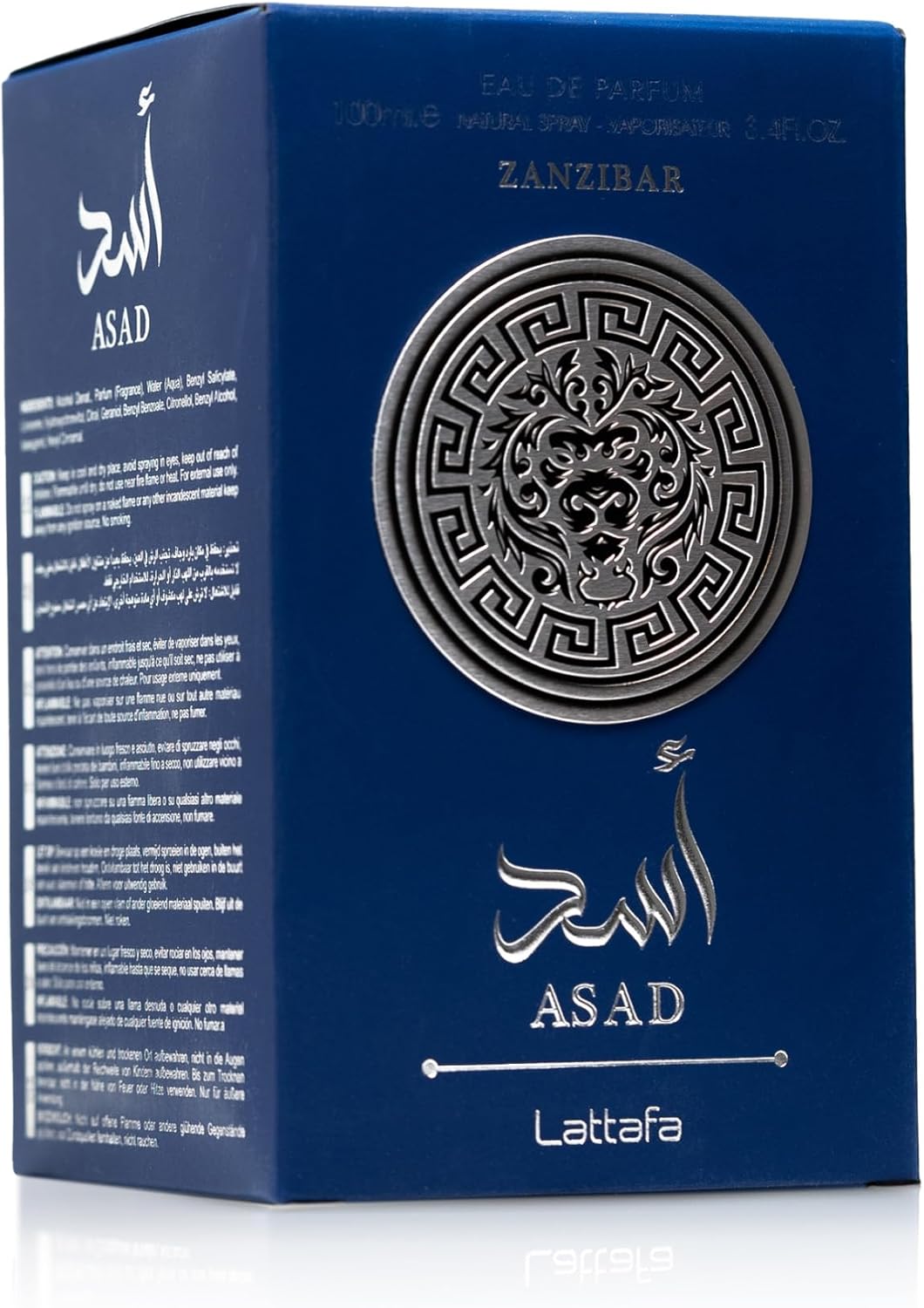 Asad Zanzibar de Lattafa est un parfum homme oriental épicé, conçu pour les hommes recherchant une fragrance intense, sophistiquée et persistante. Il s’ouvre sur des notes de café et épices orientales, évolue vers un cœur profond de patchouli et iris, et se dépose sur un fond chaud de vanille, ambre et bois précieux. Son sillage long et captivant en fait un parfum idéal pour toutes les occasions, alliant élégance et puissance masculine.