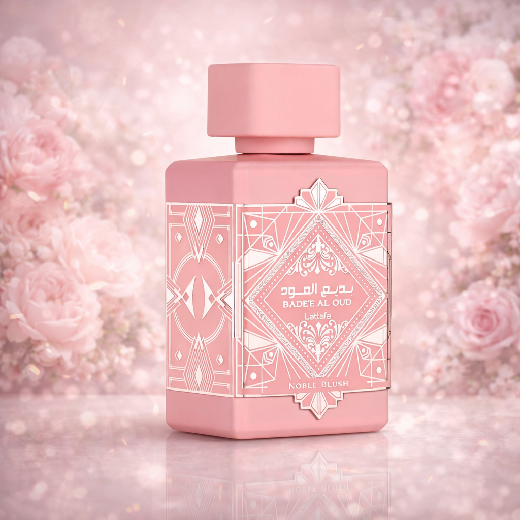 Badee Al Oud Noble Blush de Lattafa est un parfum féminin floral gourmand qui évoque une sensation douce, délicate et veloutée. La fragrance s’ouvre sur une note de lait de rose tendre et romantique, donnant immédiatement une impression crémeuse et lumineuse. Au cœur, des accords d’amande et de meringue apportent une douceur gourmande et onctueuse, tandis que le fond composé de vanille, bois de santal et musc confère profondeur, chaleur et tenue longue durée. L’ensemble forme un parfum féminin à la fois élégant, sucré et raffiné, parfait pour celles qui recherchent une fragrance douce mais présente, idéale au quotidien ou lors d’occasions spéciales.