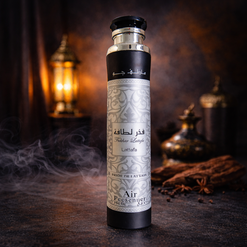 Le désodorisant Fakhar Noir Lattafa apporte une ambiance parfumée luxueuse et élégante à votre intérieur. Inspiré du célèbre parfum Fakhar Black de Lattafa, ce spray diffuse une senteur orientale intense, moderne et sophistiquée.