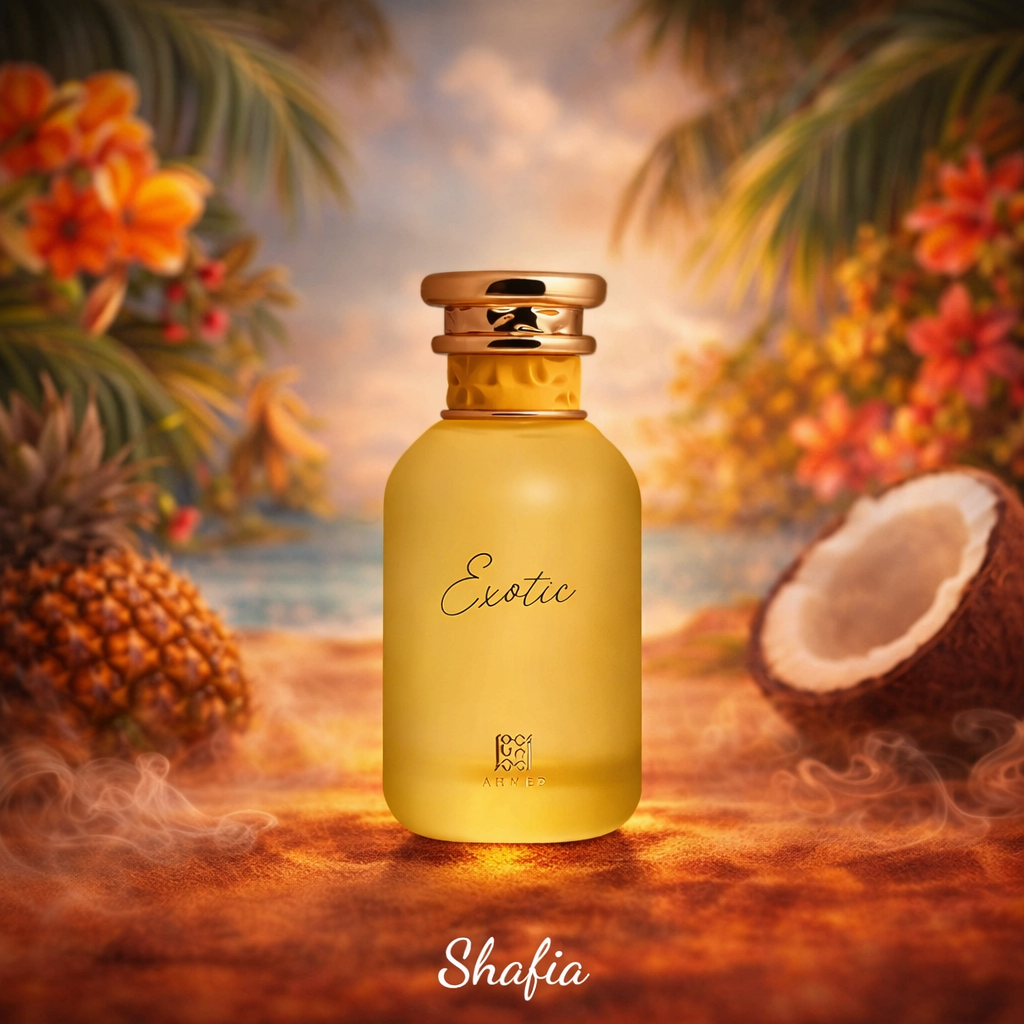 Le parfum Exotic de Ahmed Al Maghribi est une fragrance lumineuse et captivante qui transporte immédiatement vers des paysages tropicaux et ensoleillés. Dès les premières notes, des accords fruités et frais apportent une sensation d’énergie et de douceur.
