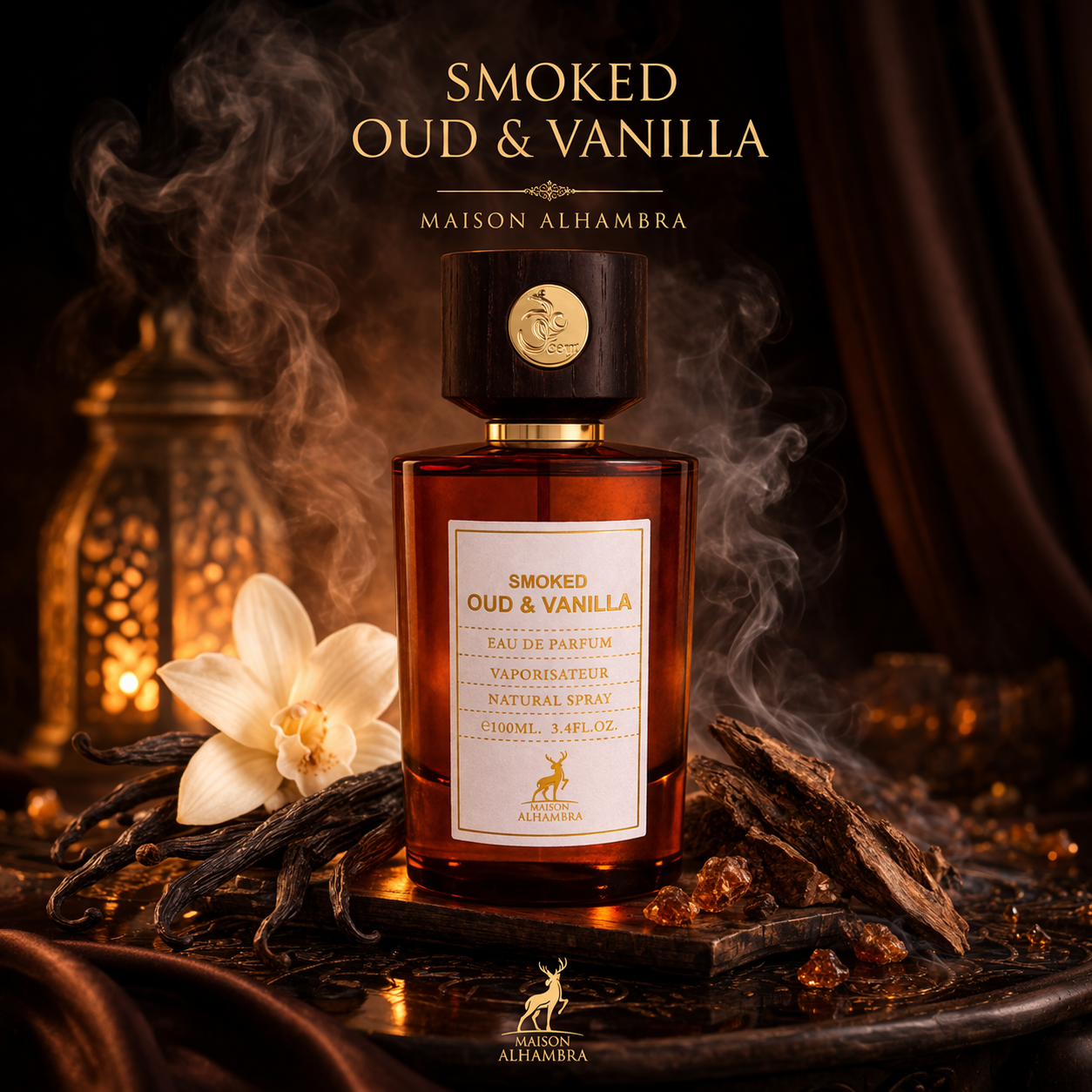 Smoked Oud & Vanilla Maison Alhambra est un parfum oriental intense mêlant oud fumé et vanille gourmande. Puissant, chaud et élégant, il offre une excellente tenue et un sillage marqué, idéal pour les amateurs de fragrances luxueuses.
